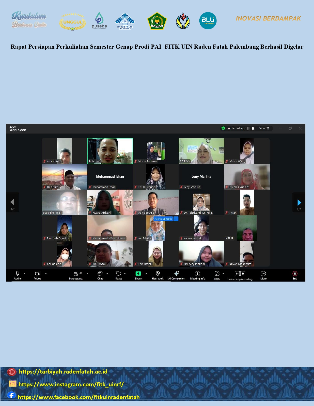 Rapat Persiapan Perkuliahan Semester Genap Prodi PAI FITK UIN Raden Fatah Palembang Berhasil Digelar | ,01 January 1970B