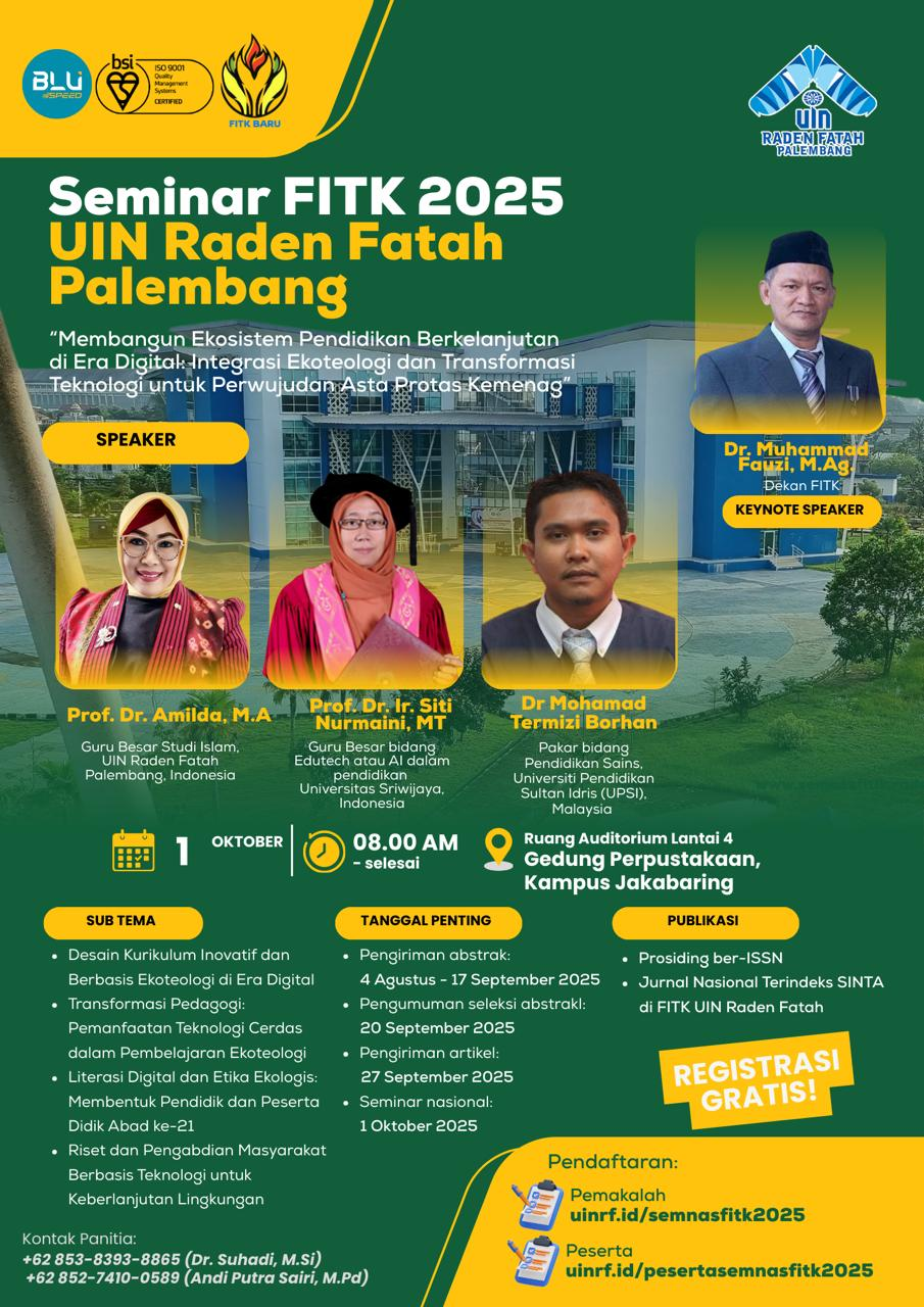 KABAR GEMBIRA FAKULTAS ILMU TARBIYAH DAN KEGURUAN UIN RADEN FATAH PALEMBANG AKAN MENGADAKAN SEMINAR FITK 2025