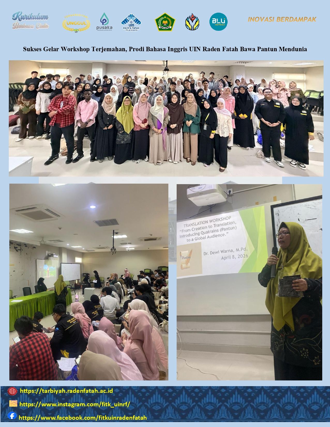 Sukses Gelar Workshop Terjemahan, Prodi Bahasa Inggris UIN Raden Fatah Bawa Pantun Mendunia