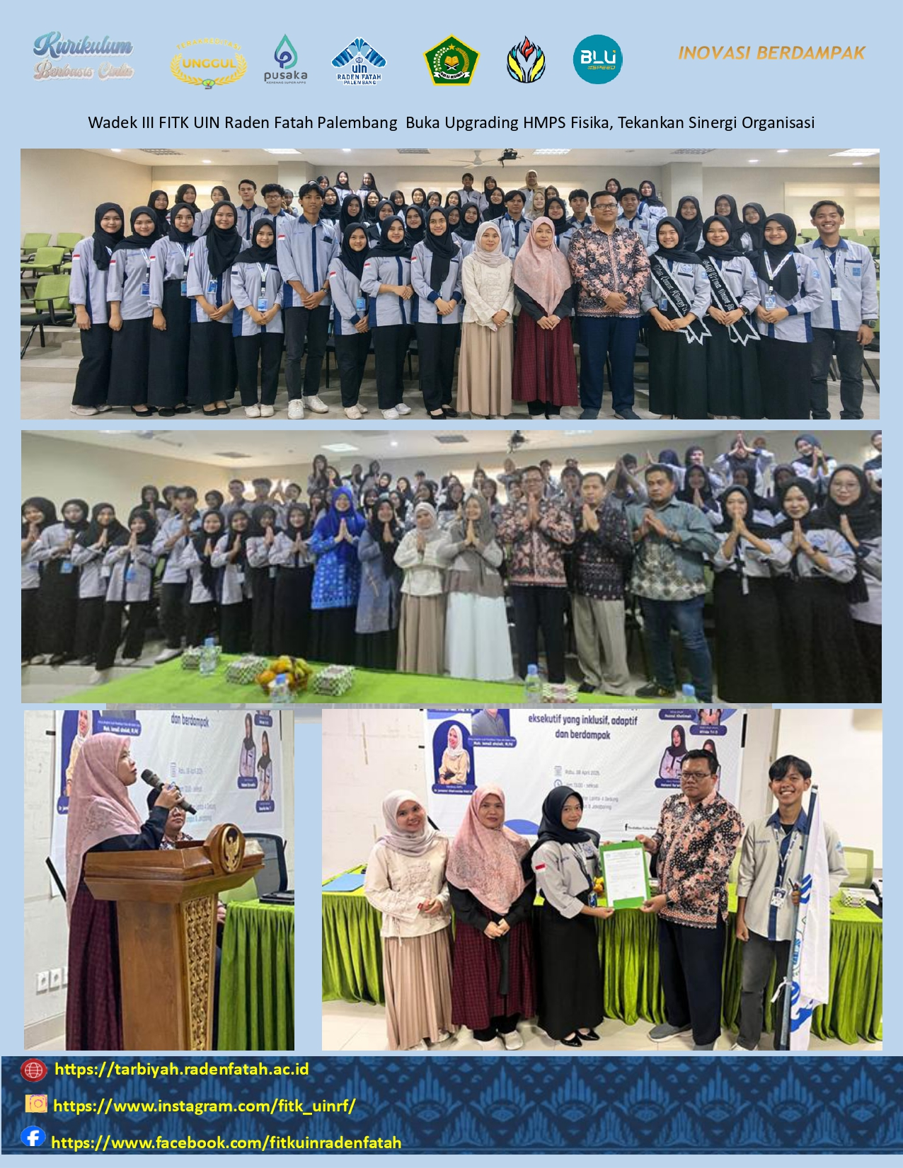 Pada kesempatan ini juga Himpunan Mahasiswa Program Studi (HMPS) Pendidikan Fisika , Fakultas Tarbiyah dan Keguruan (FITK) UIN Raden Fatah Palembang sukses menyelenggarakan kegiatan "Halal Bihalal Program Studi Pendidikan Fisika". Acara ini diselenggarakan pada hari Rabu, 8 April 2026 , bertempat di Ruang Teater Lantai 4 Gedung FITK Kampus B Jakabaring. Kegiatan ini menjadi ajang silaturahmi sekaligus momen refleksi keagamaan di lingkungan program studi.