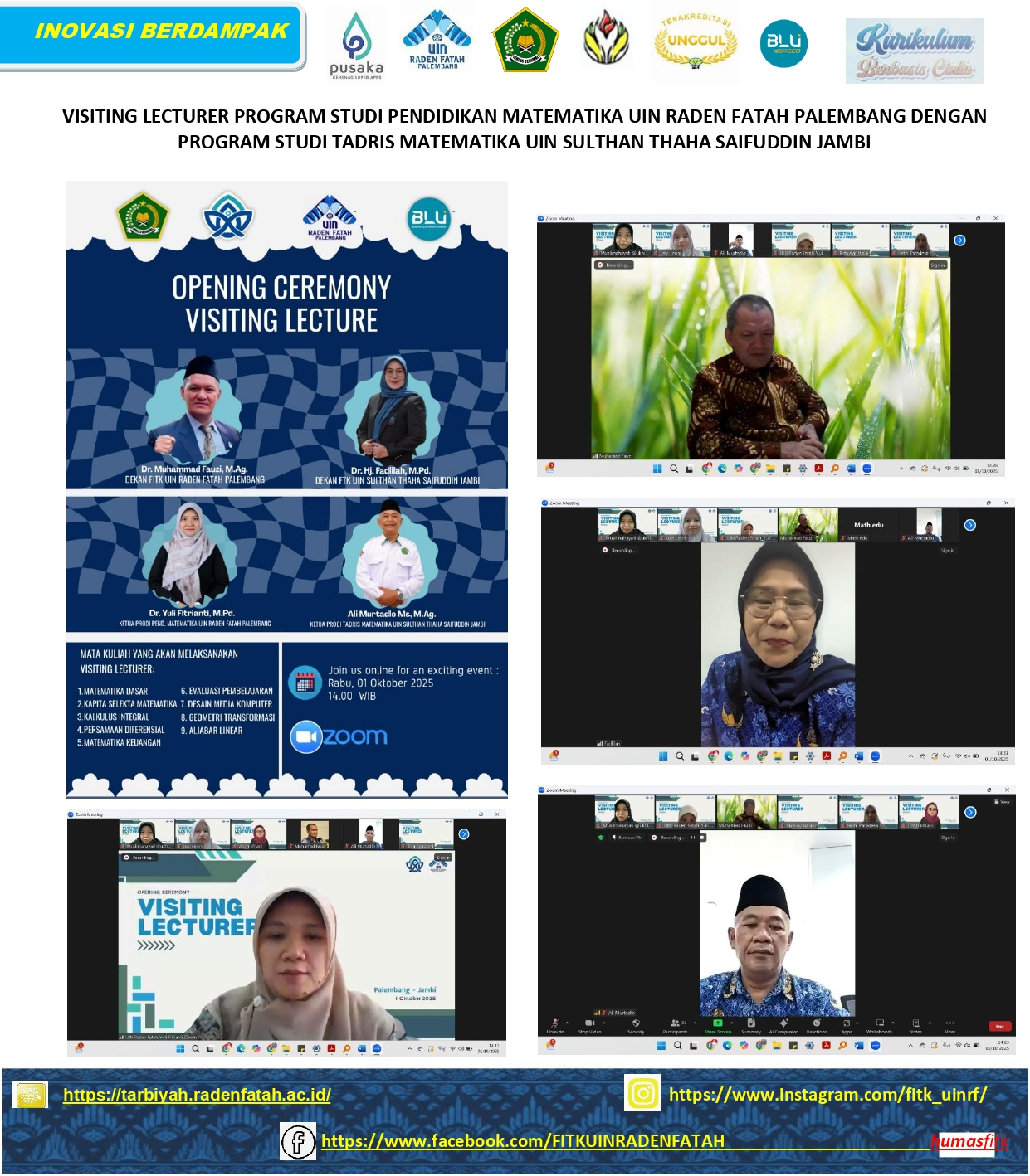 VISITING LECTURER PROGRAM STUDI PENDIDIKAN MATEMATIKA UIN RADEN FATAH PALEMBANG DENGAN PROGRAM STUDI TADRIS MATEMATIKA UIN SULTHAN THAHA SAIFUDDIN JAM