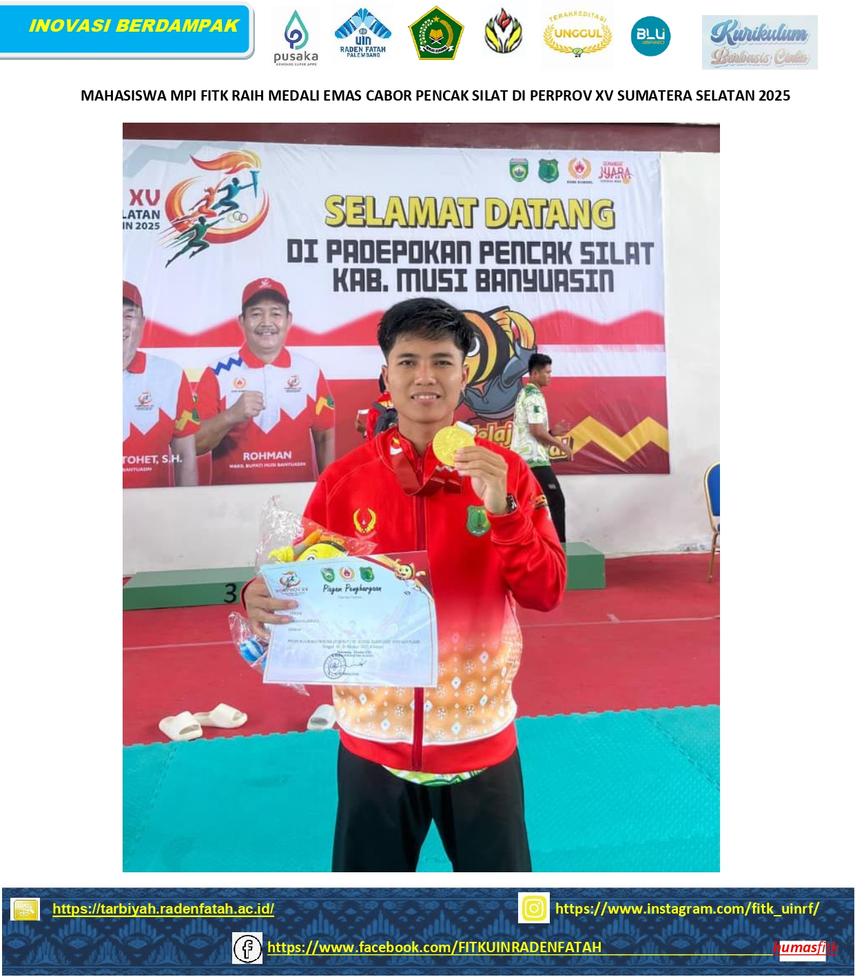 MAHASISWA MPI FITK RAIH MEDALI EMAS CABOR PENCAK SILAT DI PERPROV XV SUMATERA SELATAN 2025 | ,01 January 1970B