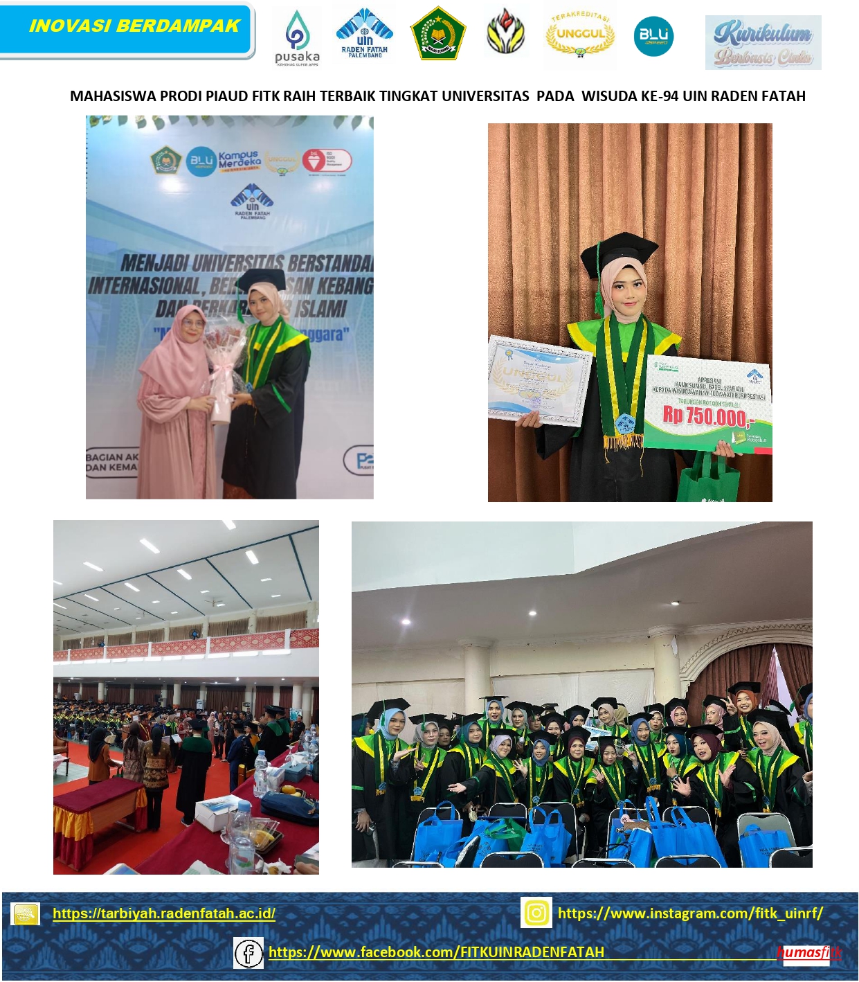 MAHASISWA PRODI PIAUD FITK RAIH TERBAIK TINGKAT UNIVERSITAS PADA WISUDA KE-94 UIN RADEN FATAH | ,01 January 1970B